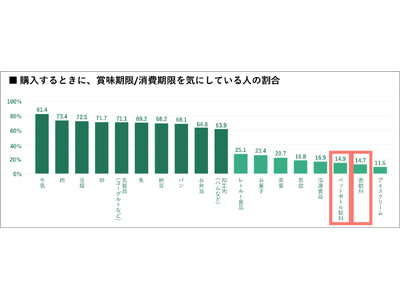 ペットボトル飲料と缶飲料は「賞味期限/消費期限をとても気にする」と回答した人の割合が特に少ないことがわかりました。