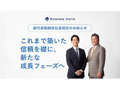 株式会社サイエンスアーツ(所在地:東京都渋谷区、以下「当社」)は、2025年11月27日付で平岡 竜太朗(ひらおか りょうたろう)が代表取締役社長に、平岡 秀一(ひらおか ひでかず)が代表取締役会長に就任したことをお知らせいたします。