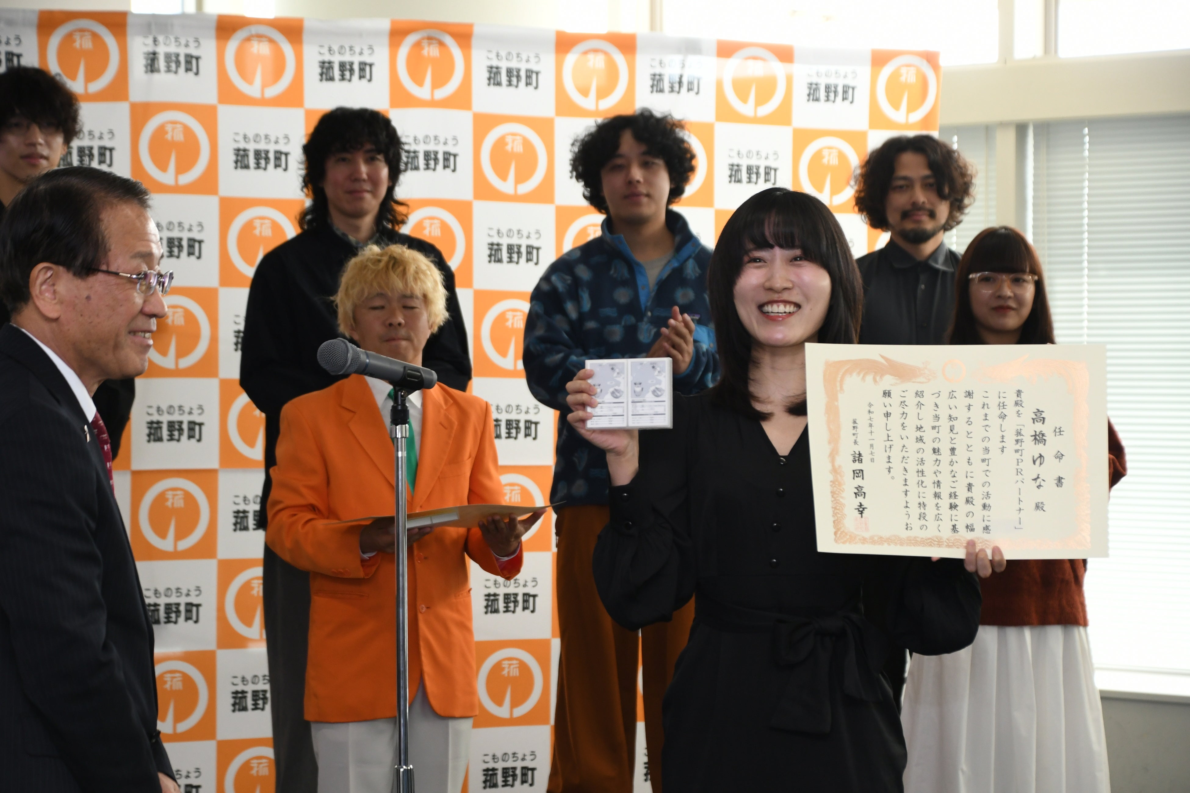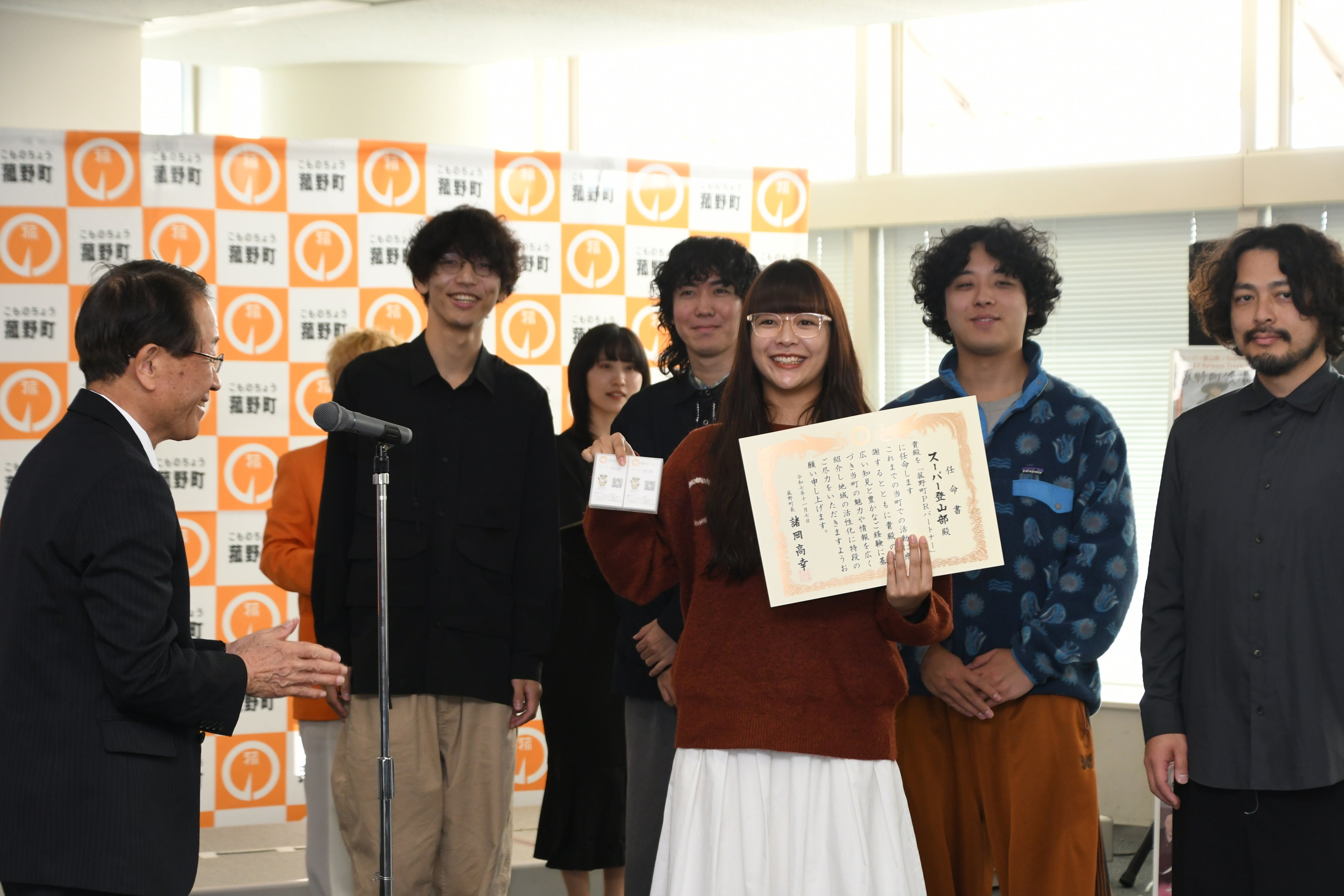 令和7年11月7日(金)、菰野町役場において任命式を執り行い、オレンジ田中さん、スーパー登山部さん、高橋ゆなさんの3組が「菰野町PRパートナー」に就任されました。