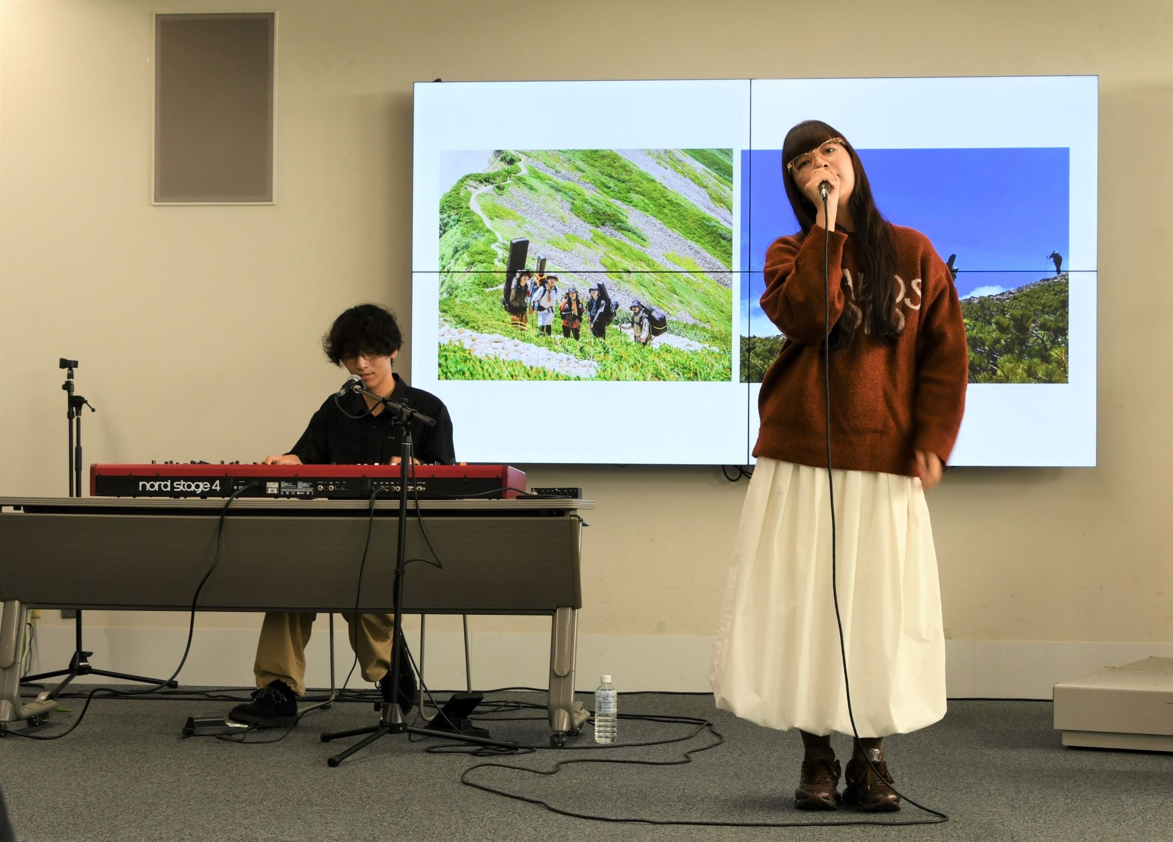 また、スーパー登山部さんは、バンド名を付けた経緯や、菰野町の御在所岳に普段からよく登っており、御在所岳を登山している様子をMV(マウンテンビデオ)として撮影したことなどを語るとともに、素敵な歌声と演奏を披露しました。