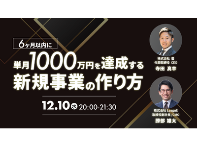 株式会社LeaguE×株式会社蕾の共催セミナー『6ヶ月以内に単月1000万円を達成する新規事業の作り方』を12月10日に開催