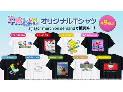 (株)NHKエンタープライズはAmazonが展開するオンデマンド・プリントサービス「Merch on Demand(マーチオンデマンド)」にて、2025年11月27日(木)より「NHK平成レトロキャラクターズ」計9作品のオリジナルTシャツを販売開始しました。各作品2デザイン、白黒2色展開で、メンズ・レディース・キッズの幅広いラインナップでお届けします。