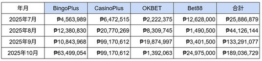 出典元:[Oct 2025] Report on Big Wins in Philippine Casinos - Jackpot Hits Reach ₱189,03 Million