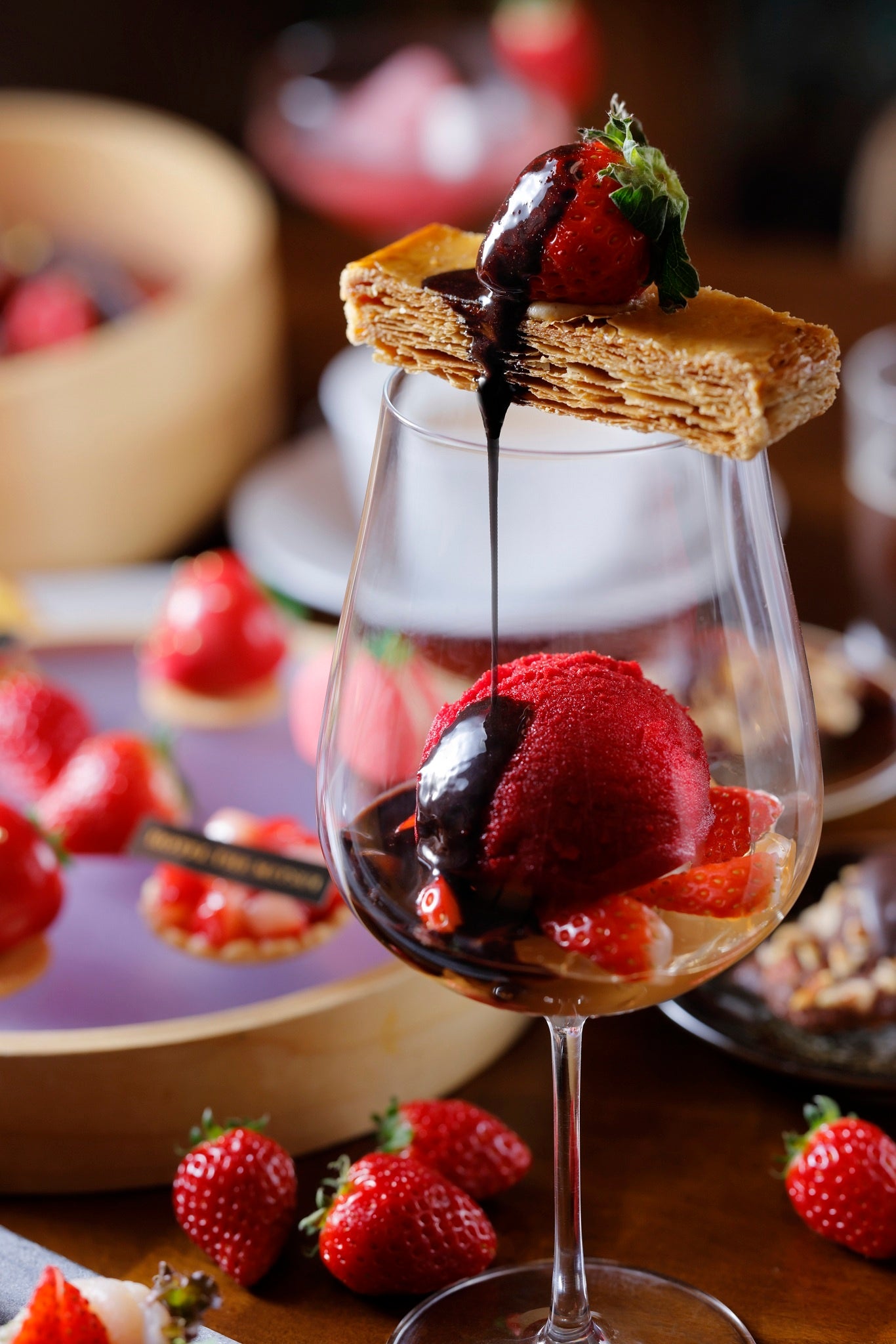 また今回より、新たなプレミアムオプションが登場。ペストリーシェフ板垣が自信をもってお届けする「いちごのパフェ」は、仕上げにチョコレートソースをお客様ご自身でたっぷりとかけてお召し上がりいただく、特別感あふれる一品です。