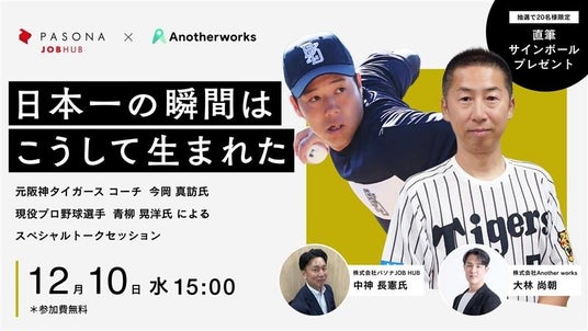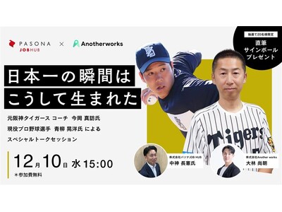 プロフェッショナルによる経営課題解決を行うProShare事業やタレントシェアリングプラットフォーム事業を手掛ける株式会社パソナJOB HUB(本社:東京都港区、代表取締役社長 高木 元義、以下パソナJOB HUB)は、株式会社Another works(本社:東京都港区、代表取締役 大林 尚朝、以下Another works)と共催セミナー『日本一の立役者が語る、勝利の方程式』を2025年12月10日(水)にグラングリーン大阪 JAM BASEにて開催します。