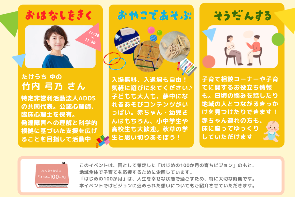 本イベントは、こども家庭庁が掲げる「はじめの100か月の育ちビジョン」の理念を具現化する、地域に根差した活動です。