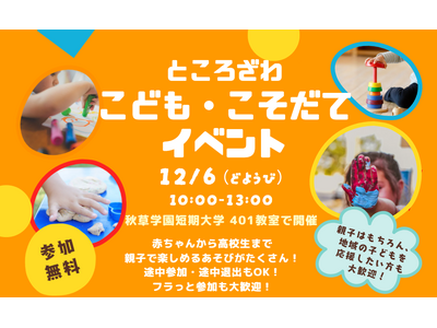 本イベントは、去る2025年10月に発表した「所沢市で『産学官連携』による子育て支援エコシステムを構築」する取り組みのうち、「つながりを継続させるイベント」として位置づけられます。未来の保育者である秋草学園短期大学の学生が中心となり、子育て中のご家族や地域の子どもたちを応援したい方々が集い、継続的な交流と子育ての孤立を防ぐコミュニティづくりを目指します。