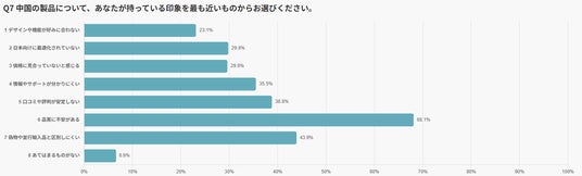 中国製品に対して最も多く挙げられた印象は「品質に不安がある」で68.1%に達しました。