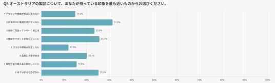 オーストラリア製品に対して最も多く選ばれた印象は「日本向けに最適化されていない」で31.5%でした。