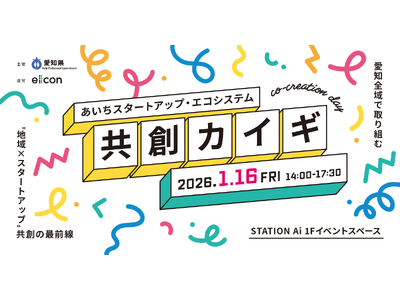 日本最大級のオープンイノベーションプラットフォーム「AUBA(アウバ)」を運営する株式会社eiicon(エイコン 本社所在地:東京都文京区後楽、代表取締役社長:中村 亜由子、以下「eiicon」)は、あいちスタートアップ・エコシステム形成の促進を目的に、「あいちスタートアップ・エコシステム 共創カイギ」を、2026年1月16日(金)、STATION Ai(名古屋・鶴舞)にて開催します。