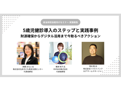 運動×テクノロジーで子どもの発達支援を行う「へやすぽアシスト」を運営するPAPAMO株式会社(本社:東京都渋谷区、代表取締役:橋本咲子、以下:PAPAMO)は、5歳児健診の導入が全国で遅れている現状を受け、株式会社トラストバンクと共催で、自治体の5歳児健診担当者向けオンラインセミナー「5歳児健診導入のステップと実践事例」を開催しました。