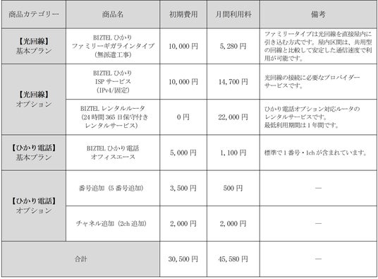 https://biztel.jp/hikari/ をご参照ください。