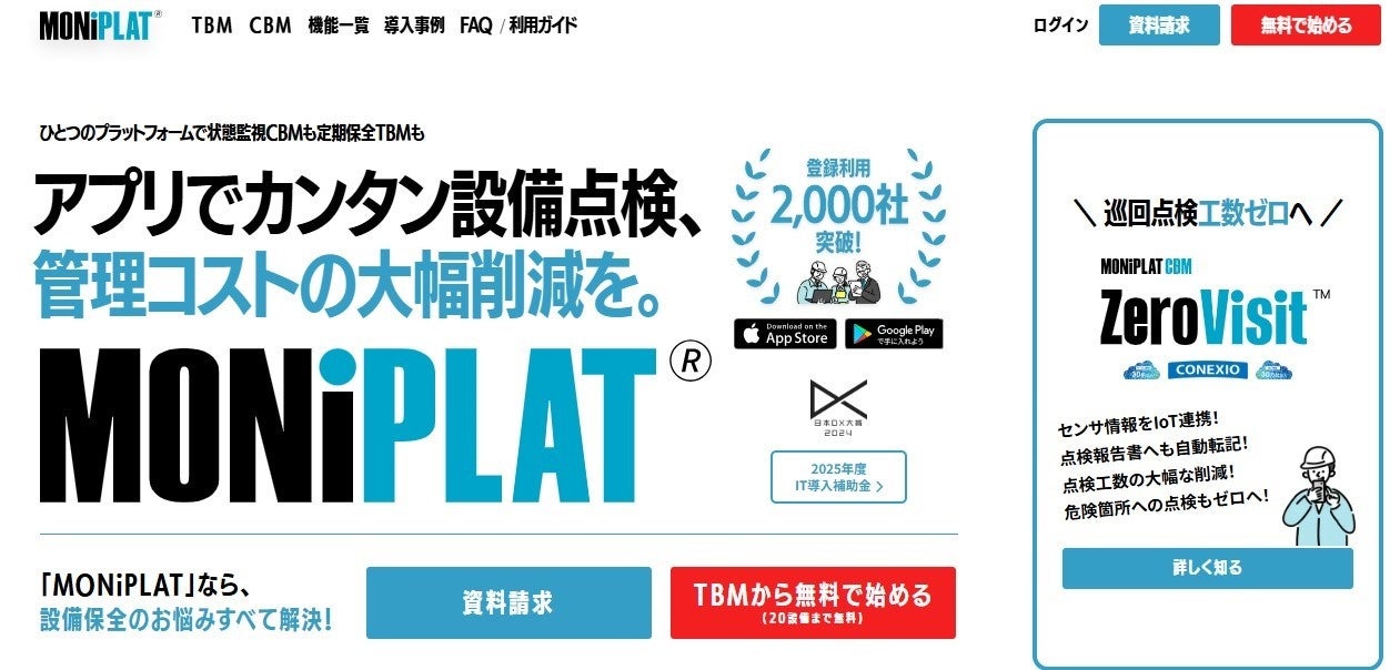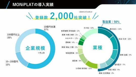 株式会社バルカー(本社:東京都品川区、代表取締役会長 CEO:瀧澤利一、以下バルカー)は、設備点検プラットフォーム「MONiPLAT(モニプラット)」の導入企業が、2023年4月のサービス提供開始から2年半で累計2,000社を突破したことをお知らせします。製造業を中心に多様な業界での導入が進み、現場のDX化を後押ししています。