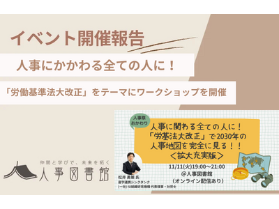 株式会社Trustyyle(本社:東京都中央区・代表取締役:吉田洋介)は、2025年11月11日に、同社が運営するコミュニティ「人事図書館」にて、「人事に関わる全ての人に!『労基法大改正』で2030年の人事地図を完全に見る!!<拡大充実版>」を開催しました。