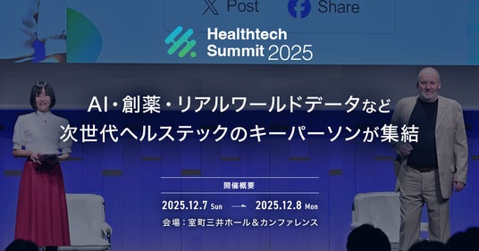 Healthtech Summit 2025運営委員会(以下、本運営委員会)は、2025年12月7日(日)・8日(月)に開催するヘルステックのグローバルカンファレンス「Healthtech Summit 2025」(以下、ヘルステックサミット)にて、AI、創薬、リアルワールドデータ(RWD)など今後のヘルステックを担う登壇者の決定をいたしました。