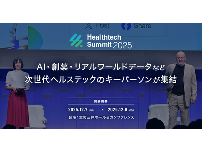 Healthtech Summit 2025運営委員会(以下、本運営委員会)は、2025年12月7日(日)・8日(月)に開催するヘルステックのグローバルカンファレンス「Healthtech Summit 2025」(以下、ヘルステックサミット)にて、AI、創薬、リアルワールドデータ(RWD) など今後のヘルステックを担う登壇者の決定をいたしました。