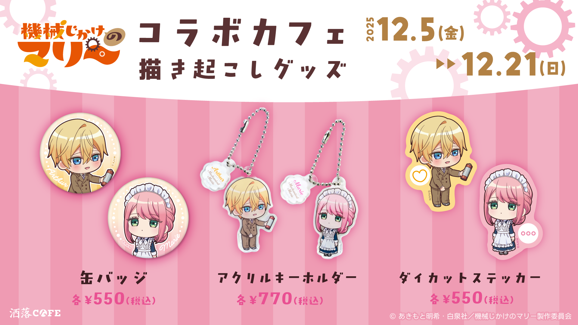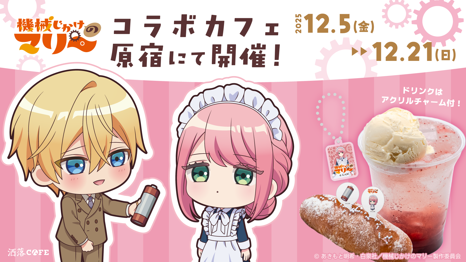 Anique株式会社(本社:東京都千代田区、代表取締役:笠井高秀)は、TVアニメ『機械じかけのマリー』のコラボカフェを、2025年12月5日(金)より東急プラザ原宿ハラカド6Fの洒落CAFE ハラカド店にて開催いたします。新規オリジナルグッズをカフェ店頭と同社が運営するサービスAniqueショップにて販売いたします。