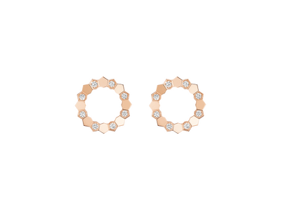 サークルスタイルのハニカムモチーフが軽やかに耳元を彩るイヤリングが加わり、
