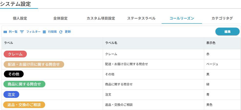 - ラベルは自由に設定可能(例:「注文」「返品相談」「商品問い合わせ」など)