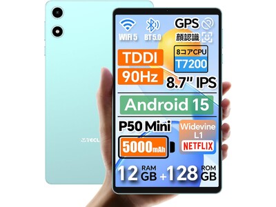 TECLAST P50 MiNi 8インチ タブレットは最新Android15 OSを搭載し、64ビットAPPアプリケーションに深く最適化され、起動と応答速度が向上しています。