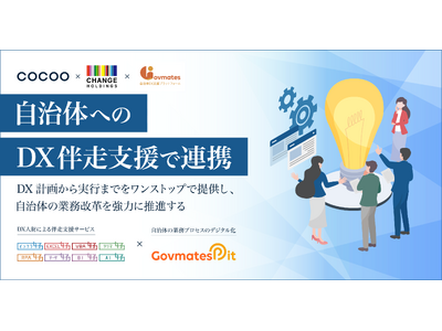 コクー株式会社(本社:東京都千代田区、代表取締役CEO:入江 雄介、以下「コクー」)、株式会社チェンジホールディングス(本社:東京都港区、代表取締役 兼 執行役員社長:福留 大士、 以下「チェンジHD」)、株式会社ガバメイツ(本社:愛媛県松山市、代表取締役:田中 芙優、以下「ガバメイツ」)は、自治体向けのDX支援サービスにおいて業務提携の締結に向けた連携を開始したことをお知らせいたします。