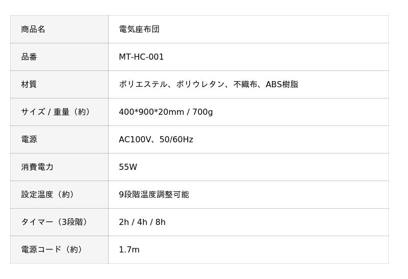 さらに、2時間・4時間・8時間のタイマー機能を搭載しており、就寝前やデスクワーク中に設定しておくだけで、消し忘れの心配なく使用できます。