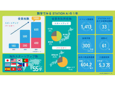 STATION Ai株式会社(ステーション・エーアイ、本社:名古屋市昭和区、代表取締役社長 兼 CEO:佐橋 宏隆)が運営する、日本最大級のオープンイノベーション拠点「STATION Ai」は、2024年10月の開業から1年を迎えました。