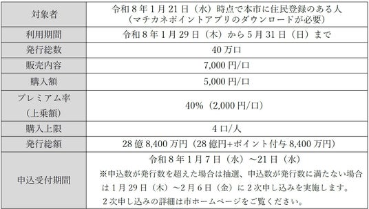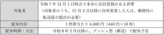 住民基本台帳に登録されている令和8年4月1日時点で18歳以下の子どもと同一世帯の商品券購入者に対し、