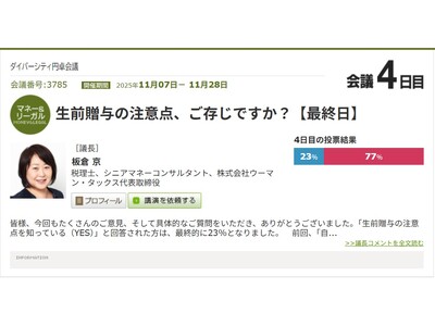 「生前贈与の注意点、ご存じですか?」。議長に、メディア出演などでも幅広く活躍する税理士・板倉京氏を迎え、2025年11月7日(金)から28日(金)まで4回にわたり、オンラインでの議論を行いました。