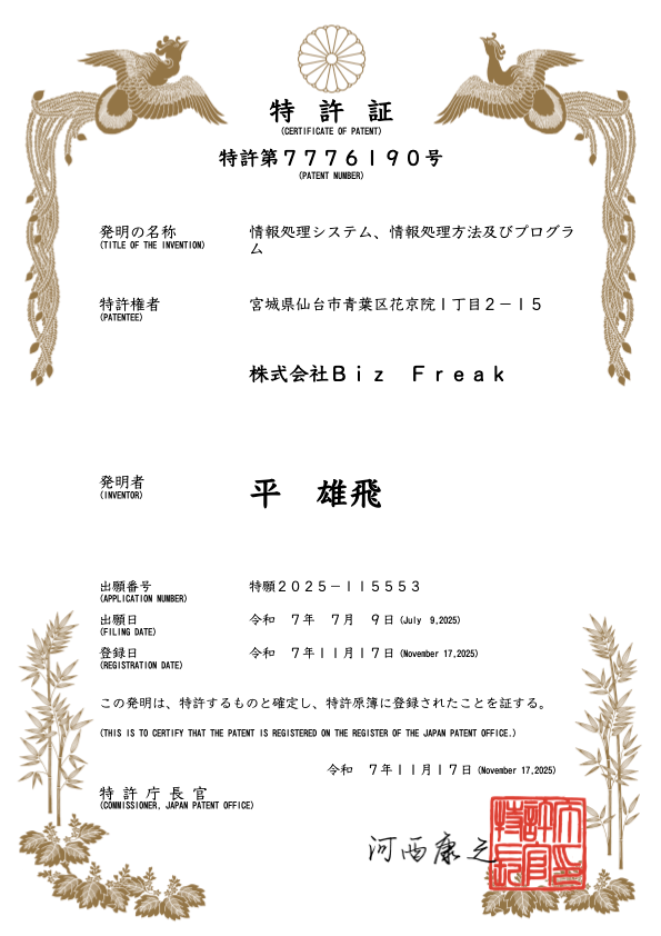 Biz Freakは、今後もAX時代における日本企業の事業変革とイノベーションを支えるため、技術開発への投資を継続してまいります。
