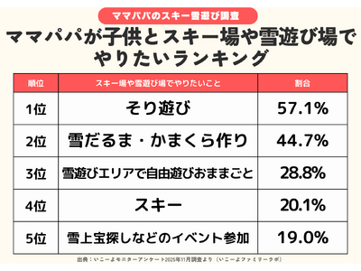 【2025年冬のあそび調査1.】発表!雪遊び場・スキー場のお楽しみランキング 2位は「雪だるま・かまくらづくり」1位は? 約7割がこの冬「雪遊び・スキーに行きたい」/いこーよファミリーラボ調査2025