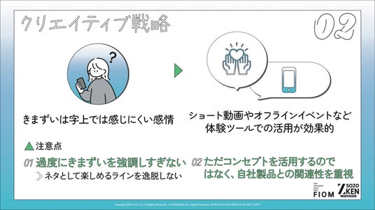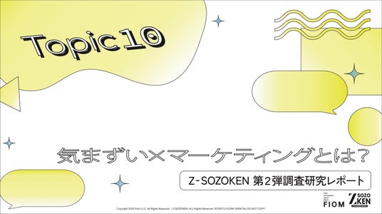 Z世代に特化したクリエイティブカンパニーFiom合同会社(本社:東京都渋谷区、代表社員:竹下洋平)が運営しているZ世代の実態や価値観を分析するシンクタンク、Z-SOZOKEN(Z世代創造性研究所)は、Z-SOZOKEN THINKTANK 最新調査研究レポートの第二弾として『Z世代の気まずいの感覚』についての調査研究レポートの第10章インサイトサマリー「気まずい×マーケティングとは?」をリリースしました。