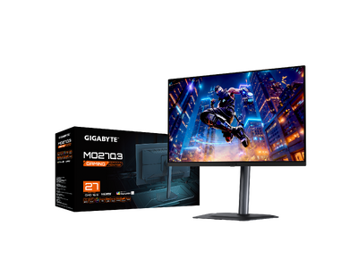 GIGABYTE MO27Q3は27インチフラットスクリーンのゲーミングディスプレイです。WQHD(2560x1440、アスペクト比16:9)の解像度と0.03ms(GTG)の応答時間、最大360Hzのリフレッシュレートで動作します。
