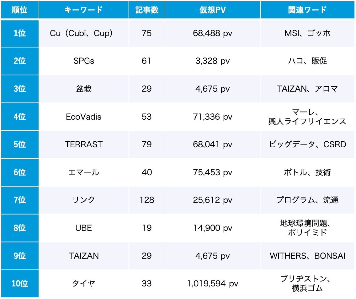 10位は「ジャパンモビリティショー」開催により、自動車のタイヤに関するニュースが集中したことを反映しています。