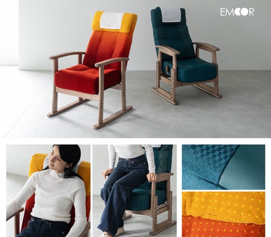 健康家具ブランドEMOORは、JR東日本とコラボし、山形新幹線E8系座席生地を使った特別仕様の高座椅子を発売しました。健康的で快適な"座る"をご家庭にお届けします。
