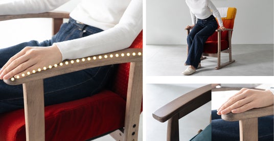 ゆるやかなカーブの肘掛は肘から腕にフィットするデザイン。先端はしっかり掴みやすい設計で立ち座りをサポートします。「ちょっと休みたい」「立ち上がって別の用事をしたい」――そんな日常の小さな動作も、無理なく自然に行えるよう配慮された設計です。
