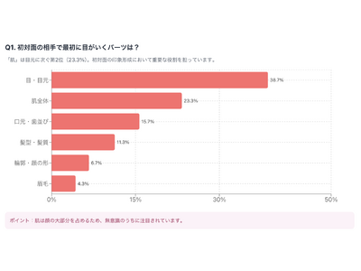 ■Q1. 初対面の相手で最初に目がいくパーツは?―「肌」が目元に次ぐ第2位