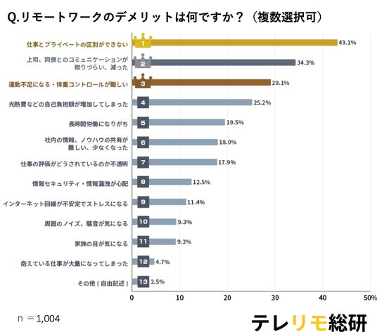 リモートワーク期間が長くなるにつれ、問題が蓄積してきたことが、順位の変化に影響しているのでしょうか。