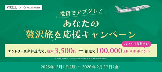 ・ZIPAIRポイントは大和コネクト証券のポイント投資にはご利用いただけません。