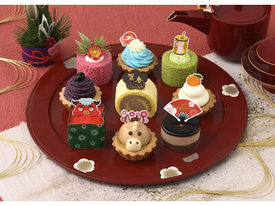 干支の”午(うま)”や初日の出をモチーフにしたタルト、おみくじ付きピックを飾ったロールケーキなど、9種のプチケーキをおせちのお重をイメージしたボックスに詰め合わせました。おせち料理のあとはスイーツを食べて、にっこり笑顔で新たな年をお迎えください。