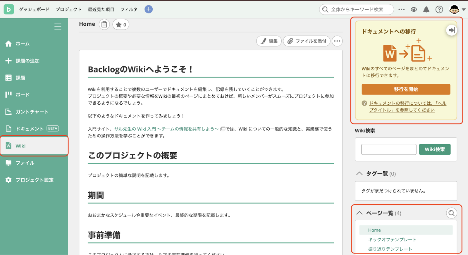 なお、現在のWiki機能については、将来的にドキュメント機能へ統合する計画です。統合時期の詳細については、決定次第あらためてご案内します。