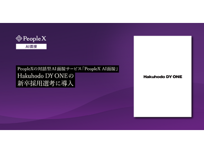 採用から活躍支援まで、AIで人事課題を解決する株式会社PeopleX(本社:東京都新宿区、代表取締役CEO:橘 大地、以下:当社)は、株式会社Hakuhodo DY ONE(本社:東京都港区、代表取締役会長:田中 雄三、代表取締役社長:小坂 洋人)の新卒採用選考に、当社が提供する対話型AI面接サービス「PeopleX AI面接」を導入いただいたことをお知らせいたします。