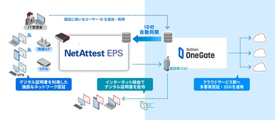 株式会社ソリトンシステムズ(本社:東京都新宿区、代表取締役社長:鎌田 理、以下 ソリトン)は、ネットワーク認証サーバー「NetAttest EPS」において、ユーザーIDおよびデジタル証明書の管理をクラウド上で行える新機能を、2026年1月に提供開始します。
