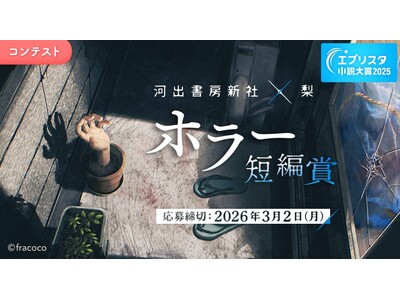 河出書房新社とエブリスタが共同で開催する、“新しいホラーの才能”を発掘するための小説コンテストの募集がスタート。作品募集期間は 2025年12月1日(月)~ 2026年3月2日(月)。