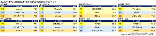 『格安SIM』評価項目別ランキング(2025年 オリコン顧客満足度(R)調査)