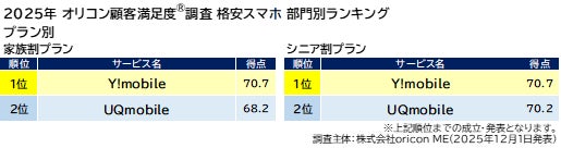 ■<初発表>「家族割プラン」「シニア割プラン」は【Y!mobile】が1位