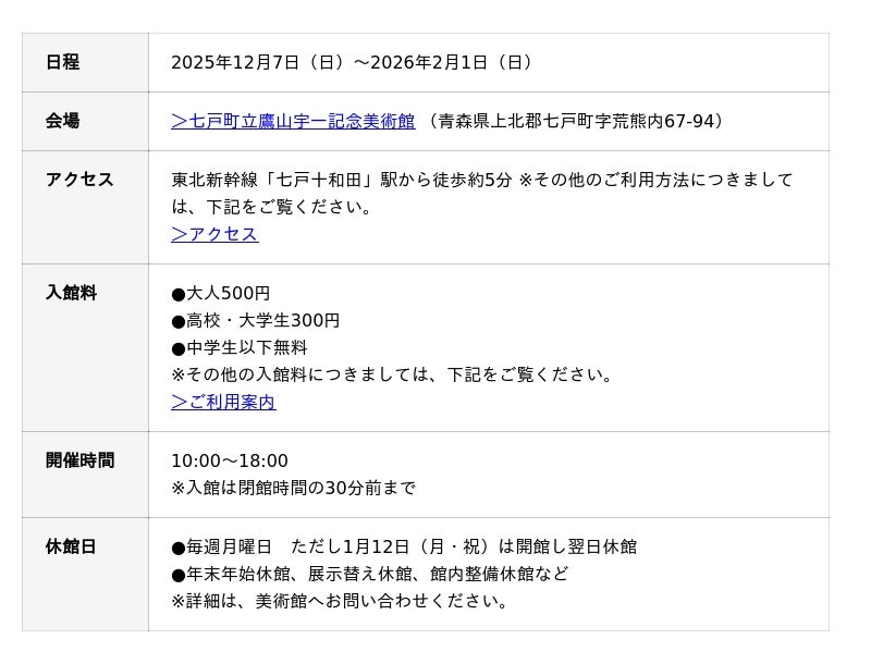七戸町立鷹山宇一記念美術館」にて展示します。
