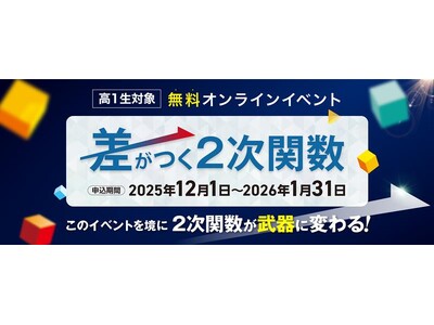 河合塾マナビスは、難関大をめざす高1生を対象に、数学の基礎となる「2次関数」を取り扱う特別映像配信「差がつく2次関数」を12月1日(月)から開催いたします。高校生が苦手意識を持ちやすい「2次関数の最大・最小」について、河合塾講師が問題を厳選。差がつくポイントを押さえながら、考え方を詳しく解説します。