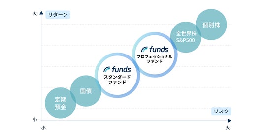 ・Fundsで取り扱うファンドは、元本が保証されているものではなく、欠損が生じる可能性があります。各ファンドの条件およびリスクの内容や性質の詳細は、重要事項説明書等をよくお読みください。
