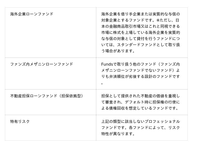プロフェッショナルファンドとは、デット性の商品の中でも比較的高い利回りを実現したファンドシリーズとなります。スタンダードファンドのリスク性と比較して、リスク要因が複雑化し、相対的にリスクが高いと考えられるため、予定利回りもそれに応じて高く設定されます。